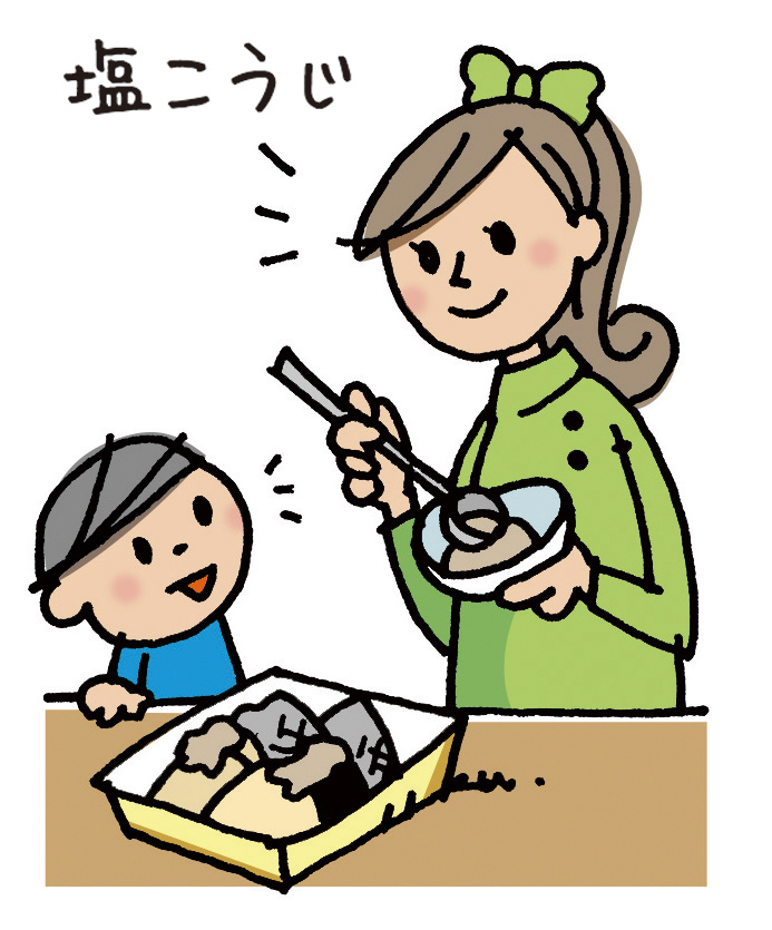 塩こうじとは、米こうじという菌と塩を混ぜて発酵させた調味料です。肉や魚にほんの少し塩こうじを塗ってしばらく置き、さっと拭いて焼くだけで簡単に子ども向けの一品ができます。また、塩こうじには肉を軟らかくする力があるため、歯が未熟な子どもの食事にはありがたい存在です。